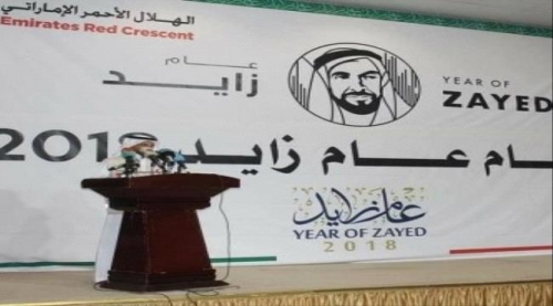 وألقيت في الحفل كلمة ترحيبية لممثل الهلال الأحمر الإماراتي سلطان الشامسي، جاء فيها: بتوجيهات القيادة الرشيدة لدولة الإمارات العربية المتحدة، وقعت اتفاقية عام زايد مع محافظات عدن ولحج و أبين و الضالع وتعز، تضمنت مشاريع خدمية وتنموية في مجالات التعليم والمياه والغذاء، وشملت إنشاء وترميم مدارس وحفر آبار مياه وتوزيع مساعدات غذائية لمختلف المحافظات، بلغت قيمتها 35.000 مليون درهم إماراتي.