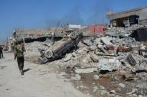 وعاين محققون الركام الناجم عن انفجار في 17 مارس آذار بحي الموصل الجديدة في غرب الموصل حيث تقاتل القوات العراقية التنظيم لطرده من المدينة.