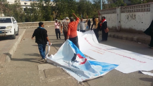 ناشطون جنوبيون يمزقون لافتات تروج لمشروع تقسيم بلادهم في عدن - ارشيف