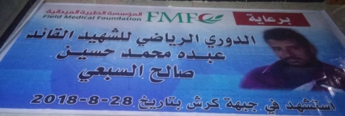 برعاية المؤسسة الطبية الميدانية FMF اختتمت عصر السبت الموافق 9/3/2019 المباراة النهائية لدوري الشهيد القائد عبده حسين السبعي وبحضور جماهيري كبير من مشجعي الفريقين وعشاق الرياضة والتي اقيمت على ملعب الشهيد سالمين بمنطقة الحمراء مديرية الازارق محافظة الضالع والتي جمعت الفريقين المتأهلين الى نهائي الدوري فريق النهضة وفريق براكين صمعان..