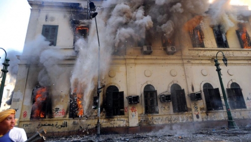 بعيدا عن الأحداث فى الجزائر، تعرضت بعض الأبنية الأثرية فى البلاد العربية للتخريب والحريق، منها ما حدث من حريق للمجمع العلمى بالقاهرة، حيث فيه اشتعلت النيران فى المجمع صباح السبت 17/12/2011، خلال أحداث مجلس الوزراء، وتجددت الحرائق فى مبنى المجمع صباح الأحد 18 ديسمبر 2011، بعد انهيار السقف العلوى للمبنى من الداخل، فقضى على أغلب محتويات المجمع. لم ينج من محتويات المجمع، البالغ عددها 200 ألف وثيقة.