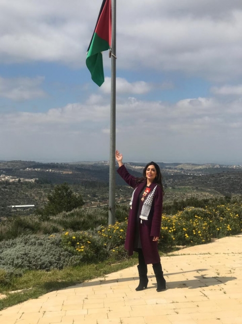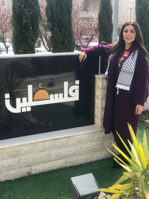 الرئيس الفلسطيني محمود عباس يكرم الفنانة هدى حمدان على دورها في المسلسل الاماراتي "خيانة وطن"