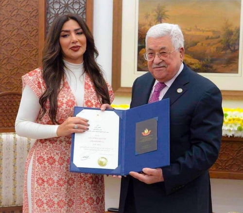 بالصور| الرئيس الفلسطيني عباس يكرم الفنانة هدى حمدان