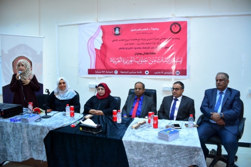 برعاية الدكتور/ الخضرناصر لصور رئيس جامعة عدن وبمناسبة اليوم العالمي للمرأة (٨)مارس وتزامناً مع فعاليات أسبوع الطالب الجامعي الـ(٢١) نظم مركز المرأة للبحوث والتدريب جامعة عدن صباح بديوان رئاسة الجامعة حلقة نقاش( بعنوان نساء رائدات من جنوب الجزيرة العربية) بمشاركة (٧٠) مشاركة من النساء الرائدات في المجتمع.