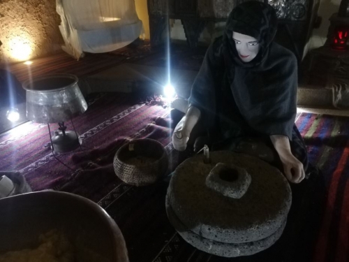 ويمكن لزائر القبو أن يشاهد بيت الشعر المصنوع من وبر الجمال، كما يرى كيف تحلب المرأة الأردنية الأغنام، والطريقة التقليدية لعجن الخبز، وإعداد وجبة المنسف المشهورة في الأردن.