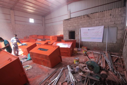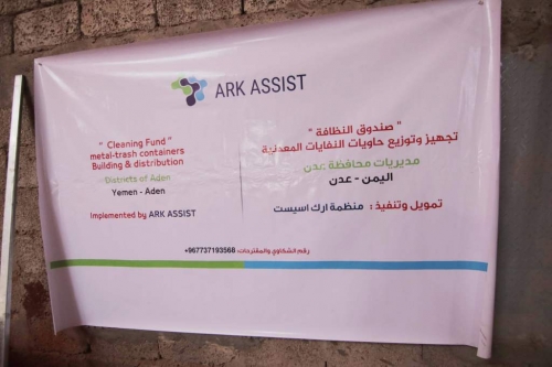وفي هذا الخصوص تتواصل أعمال صندوق النظافة وتحسين المدينة من خلال تجهيز وتوزيع حاويات النفايات المعدنية بتمويل وتنفيذ منظمة أرك أسيست ، حيث تم تجهيز (٦٠) حاوية قمامة معدنية، تم تسليمها للمسؤولين في بلدية عدن لتوزيعها بحسب الإحتياجات الضرورية والأولويات في الخدمات الصحية والمائية والبيئية .