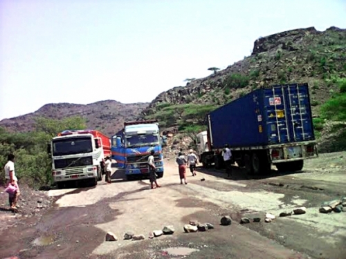 شددة القبائل المرابطة على الطريق بمنعها دخول وخروج مركبات البضائع ومنع دخول القات إلى مدينة عدن