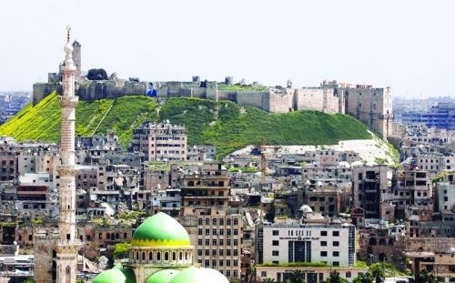 مشهد عام لحلب تظهر فيه قلعتها التاريخية وآثار الحرب وسط المدينة | رويترز