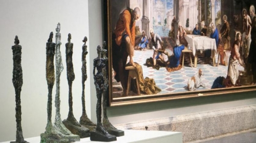 من أبرز التظاهرات التي ينظمها متحف «البرادو» في مدريد هذا العام، بمناسبة الذكرى المئوية الثانية لتأسيسه، معرض حواري بين مجموعة من أهم أعمال أحد أكبر النحاتين في القرن العشرين، السويسري ألبرتو جياكومتي، وعدد من اللوحات الشهيرة لعباقرة الرسم الكلاسيكي التي تزخر بها قاعات المتحف.