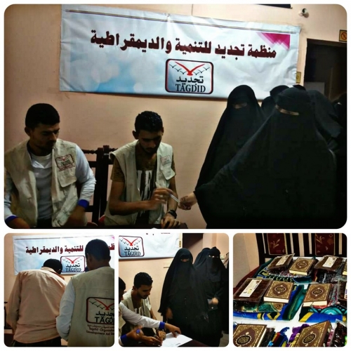 بدأت منظمة تجديد للتنمية والديمقراطية تنفيذ خطتها الرمضانية ، والتي استهدفت النازحين والاسر الفقيرة النازحة والاشد فقراً، حيث ستشمل الخطة لتوزيع سلة غذائية متكاملة لعدد (1200) أسرة في عدن ولحج وابين.