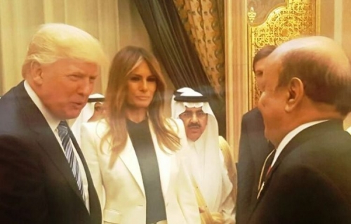 الرئيس اليمني الانتقالي عبدربه منصور هادي يصافح الرئيس الامريكي دونالد ترامب