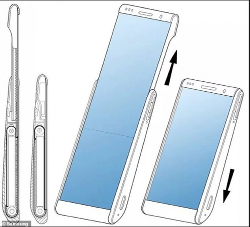 ونشرت شركة الهواتف الذكية الكورية صورًا جديدة لبراءة اختراع هاتفها الجديد المسمى ”غالاكسي رول“، والذي يمكن لشاشته أن تتمدد لمضاعفة حجمها.