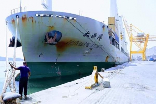 وقد وصلت الباخرة بتمام الساعة 11 صباحآ من يومنا هذا الاثنين و متوقع مغادرتها خلال أقل من 48 ساعة من بدء عملية التفريغ التي بدأت ظهر اليوم الاثنين بتمام 2 ظهرآ، من قبل إدارة الأرصفة و مكتب تنسيق وتنظيم عمال الشحن و التفريغ بميناء المعلا .