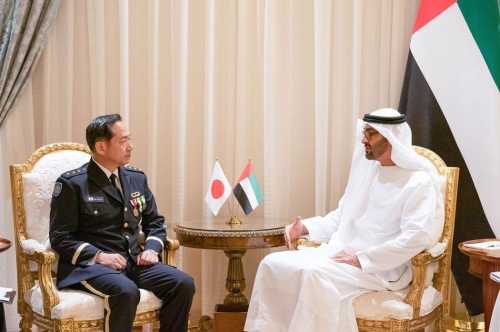 بحث ولي عهد أبوظبي الشيخ محمد بن زايد آل نهيان اليوم الاثنين مع رئيس أركان القوات اليابانية المشتركة كوجي يامازاكي الذي يزور العاصمة الإماراتية، سبل التعاون في مجال الدفاع بعد أيام فقط من الهجوم على ناقلة نفط يابانية وأخرى نرويجية قبالة الإمارات.