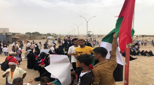 تظاهرة كبرى امام مقر قوات التحالف العربي نظمها نشطاء جنوبيون للمطالبة ببقاء دولة الإمارات في عدن