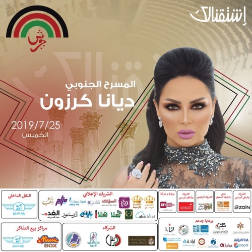 كما ستشارك سوبر ستار العرب ديانا كرزون في مهرجان جرش للثقافة والفنون في نسخته الرابعة والثلاثين بتاريخ 25/7 / 2019 لتلقي جمهورها الاردني والعربي على اعرق المسارح العربية في مدينة جرش الاثرية " المسرح الجنوبي " في ليلة من اهم ليالي مهرجان جرش .