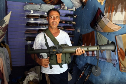 وتصنّع بعض الأسلحة محليا، ويهّرب بعضها الآخر، إلا أنّ مصدر غالبيتها مجهول. ويبلغ سعر رشّاش الكلاشنيكوف 1090 دولارا، والمسدس 818 دولارا، فيما تباع الرصاصة الواحدة بنصف دولار. وكحال أبوعلي، أجبرت الحرب محمد تاجر الذي كان يعمل في مجال صناعة الخزف على أن يتحوّل إلى بيع السلاح.