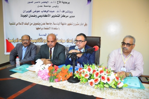 نظمت كلية الهندسة بجامعة عدن صباح اليوم الموافق (٢٨يوليو٢٠١٩م) ورشة عمل خاصة بإعداد مواصفات البرامج الأكاديمية والمساقات الدراسية لـ(٤٠) مشارك ومشاركة من أعضاء هيئة التدريس في الكلية تتويجاً لزيارتهم لدولتي ماليزيا و مصر العربية الشقيقة ضمن برنامج التطوير الأكاديمي.