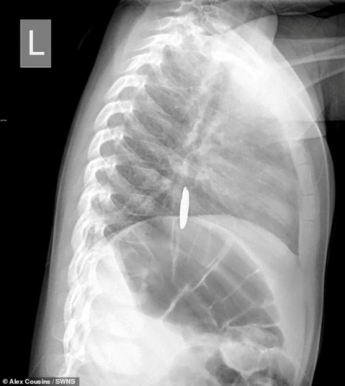 ووفقا لتقرير لصحيفة "ديلى ميل البريطانية"أكد الأطباء أن الأم كانت تظن أن طفلتها ابتلعت عمله نقود ولكن تبين أن الطفلة ابتلعت بطارية ليثيوم وظلت مثبتة في أعلى المريء فى منطقة الصدر.