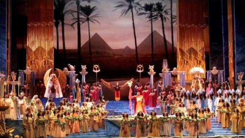 وقد كتب فيردي عمله هذا في النصف الثاني من القرن التاسع عشر بطلب من الخديوي إسماعيل (1830 - 1895)، وذلك بمناسبة افتتاح مسرح "أوبرا القاهرة" عام 1871. وبقيت المعزوفة مرتبطةً بتاريخ وثقافة مصر منذ ذلك اليوم.
