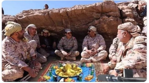 نائب الرئيس اليمني علي محسن الأحمر يتوسط قادة عسكريين في مأرب - ارشيف