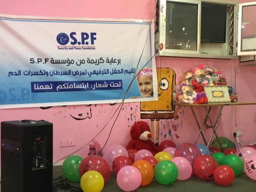 برعاية مؤسسة spf وبدعم من الأخ / عسكر علي والأخوة مطعم السفينة أقامت المؤسسة حفلا ترفيهيا لأطفال مرضى السرطان في مستشفى الصداقة بعدن .