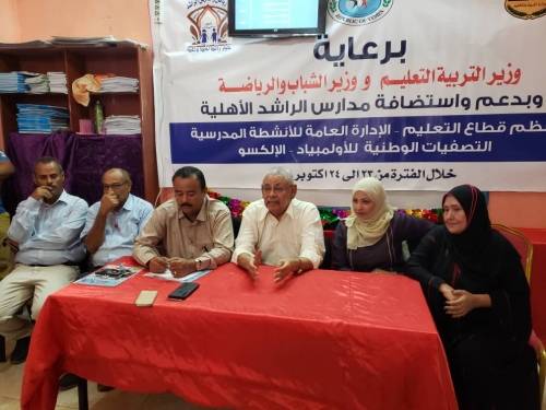 أقيمت صباح اليوم التصفيات النهائية الوطنية للألومبياد- الإلكسو والتي تحتضنها مدارس الراشد الأهلية في الممدارة بالعاصمة عدن برعاية وزارتي (التربية والتعليم والشباب والرياضة).