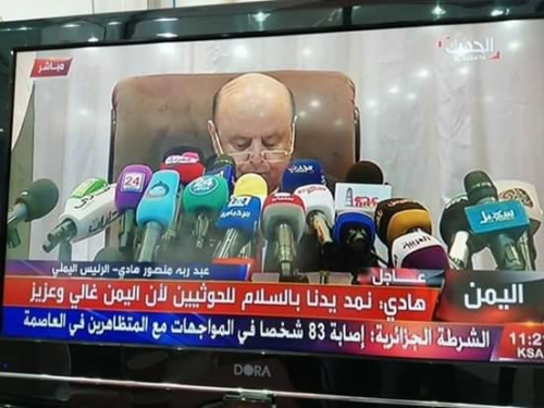 الرئيس اليمني المؤقت عبدربه منصور أعلن أكثر من مرة دعوته للسلام مع الحوثيين - ارشيف