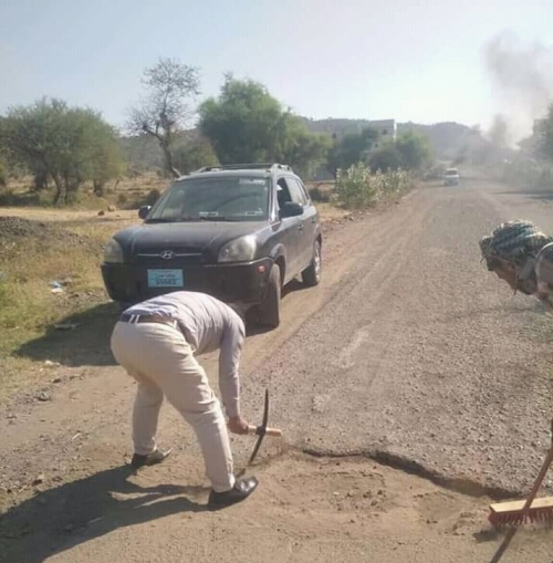 ينفذ بتبرعات الأهالي..مبادرة شبابية ترمم طريق التربة بتعز