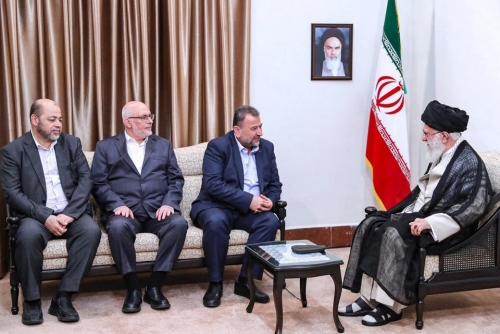 قيادات من “حماس” خلال اجتماعها مع المرشد الإيراني- “رويترز”
