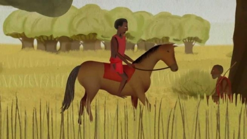 من رسوم حكاية "الشيطان والمرأة والطير" من السنغال