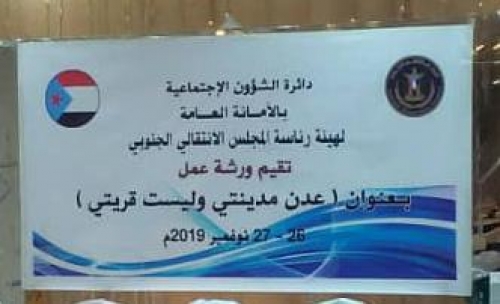 ورشة "عدن مدينتي وليست قريتي" برعاية دائرة الشؤون الاجتماعية