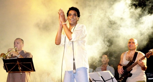 وجلس محمد منير على كرسي في بعض فقرات الحفل، لتخفيف آلام الانزلاق الغضروفي الذي يعاني منه.