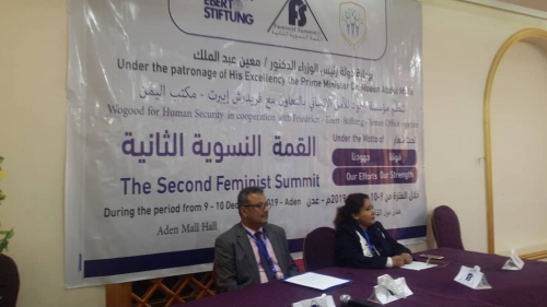 أقيمت "القمة النسوية الثانية" بالعاصمة بعدن والتي تنظمها مؤسسة وجود للأمن الإنساني بالتعاون فريد ريش إيبرت الألمانية - مكتب اليمن تحت شعار (قوتنا جهودنا) ، برعاية دولة رئيس الحكومة اليمنية الدكتور/ معين عبد الملك ،خلال الفترة 9-10ديسمبر 2019م وبمشاركة قيادات وتكتلات نسويه حكومية ومنظمات مجتمع مدني من مختلف المجالات الأكاديمية والمحافظات.