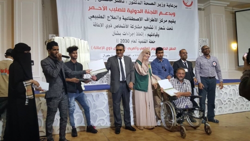 نظم مركز الاطراف الاصطناعية والعلاج الطبيعي بالعاصمة عدن ، بدعم من اللجنة الدولية للصليب الاحمر، حفل بمناسبة اليوم العالمي والعربي للاشخاص ذوي الإعاقة، تحت شعار ” تشجيع مشاركة الاشخاص ذوي الإعاقة وقيادتهم .. اتخاذ اجراءات بشأن خطة التنمية لعام2030م.