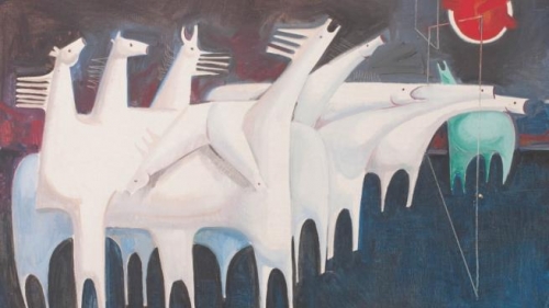قافلةٌ عبرت بالموسيقى؛ مشتعلةً بثيابها الزهرية. قافلةٌ من الحرير والنجوم والماس نأت وغابت في الموسيقى.