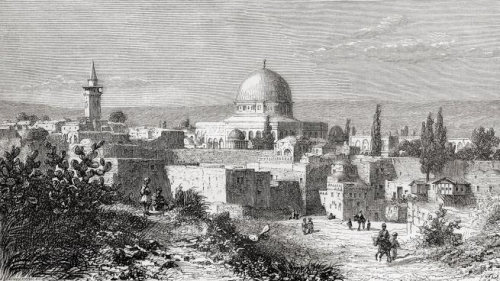 القدس، كما بدت في رسم يعود إلى عام 1875(Getty)