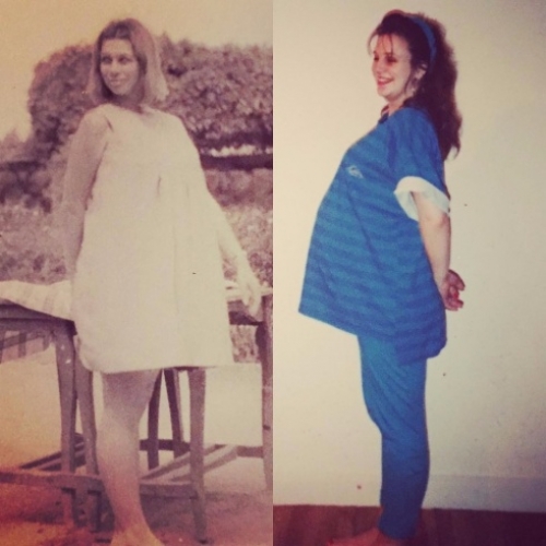 كما نشرت صورة لوالدتها أثناء حملها بها. وتعليقاً عليهما كتبت:«صورتي وأنا حامل بابنتي نور بنتي وصورة ماما وهي حامل بي».