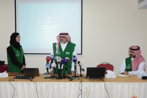 جانب من المؤتمر الصحفي الذي عقده البرنامج السعودي لتنمية واعمار اليمن - سبأ اليمنية