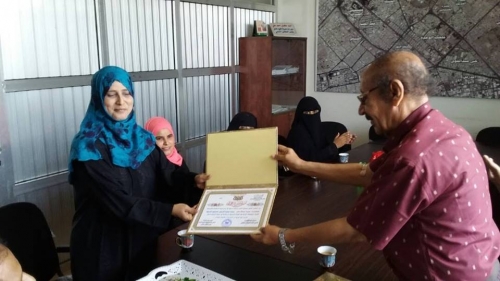كرم المجلس المحلي في مديرية الشيخ عثمان صباح الاربعاء المهندسة سميرة عبدالله نصر رئيسة جمعية الفردوس.