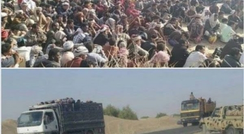 اكثر من ٣٠٠ عائلة شمالية مهجرة من مأرب شوهدت على متن شاحنات نقل صغيرة في طريقها الى عدن