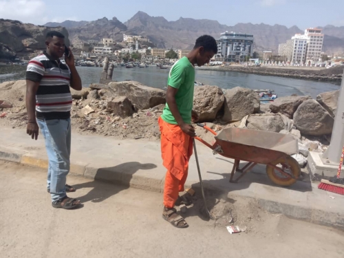 نفذ قسم النظافة بمديرية صيرة بمحافظة عدن ، حملة نظافة لكورنيش صيرة السياحي .