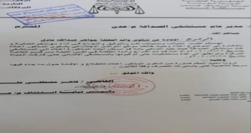 وجهت نيابة الاستئناف بعدن، اليوم الثلاثاء، مذكرة إلى مستشفى الصداقة وذلك للإفادة حول شكوى والد الطفلة جواهر، التي توفت الأحد.