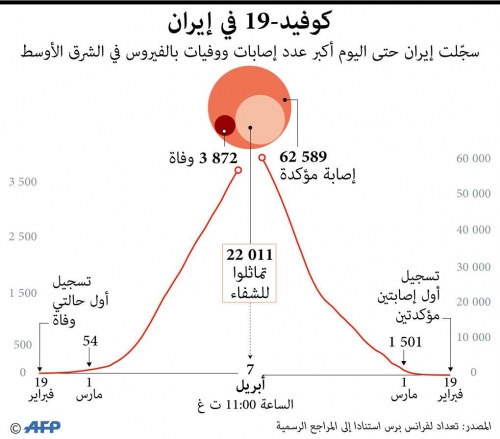 وترجح التوقعات انتعاش الوباء في إيران خلال الأيام القادمة لاسيما مع إعلان الرئيس الإيراني حسن روحاني استئناف الأنشطة الاقتصادية بسبب ما تعيشه غيران من أزمة آخذة في التفاقم مع تعطل القطاعات الحيوية بسبب انتشار المرض.