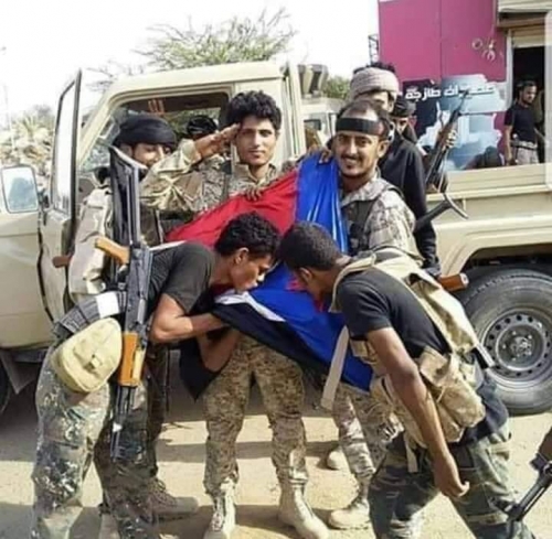 مقاتلون جنوبيون يقبلون علم بلادهم عقب معارك مع التنظيمات الارهابية - ارشيف