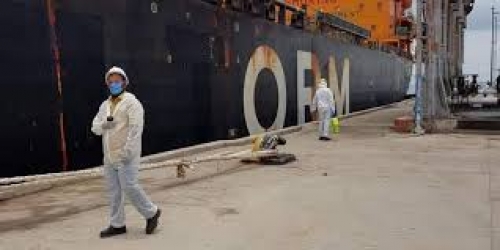 حيث قام فريق صحي تابع لهيئة مواني عدن بفحص جميع أفراد طاقم السفينة ، وتنفيذ عدد من الإجراءات الوقائية لمكافحة فيروس كورونا.