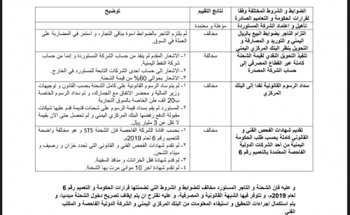 وتكشف الوثيقة التي نشرها الشرعبي أيضا مخالفات شحنات النفط التي يقوم ببيعها العيسي للحكومة اليمنية للمواصفات بمساعدة لوبي في المصافي وشركة النفط بالعاصمة عدن.