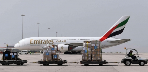 وحملت الطائرتان اللتان أقلعتا من العاصمة أبوظبي أكثر من 32 طنا من الإمدادات بما في ذلك صناديق من القفازات والأقنعة الجراحية ومعدات الوقاية.