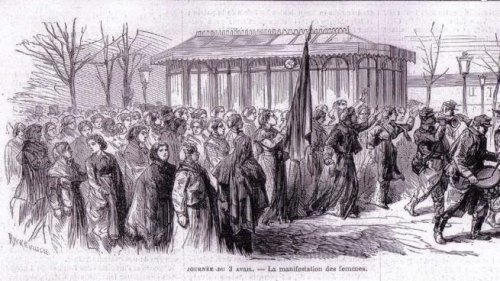 (رسم يصور مظاهرة النساء في 4 نيسان/ أبريل 1871)