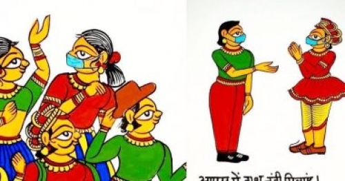 أصدر فنانون هنود بارزون فى الهند سلسلة من اللوحات لنشر رسالة التباعد الاجتماعى والنظافة الصحية لمنع انتشار فيروس كورونا، ويأتى ذلك خلال فترة الإغلاق التى استمرت أكثر من شهر، ولذا أنتج مجموعة من الفنانين الشعبيين والحرفيين فى جميع أنحاء الهند هذه الرسوم التوضيحية واللوحات بأساليب تقليدية.
